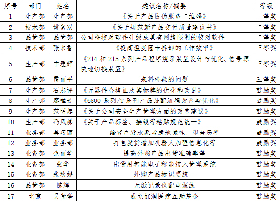 近日,虹潤公司召開了合理化建議評選活動,活動得到廣大員工的積極響應,踴躍參與,經公司評審小組綜合評定,共評出了1項一等獎、2項二等獎、3項三等獎和11項鼓勵獎。長期以來,公司將合理化建議制度列為常態化機制運行,把合理化建議活動作為激勵廣大職工參與管理、發揮創造才能、實現自我價值的重要途徑,激勵員工以“虹潤不怕遠征難”的企業精神開拓進取,積極投身節能挖潛、技術改造,通過職工在實際工作中針對可改進事項提出好點子、金點子,不斷創新工作方式方法,優化生產技術工藝,達到提質及降本增效的目標。