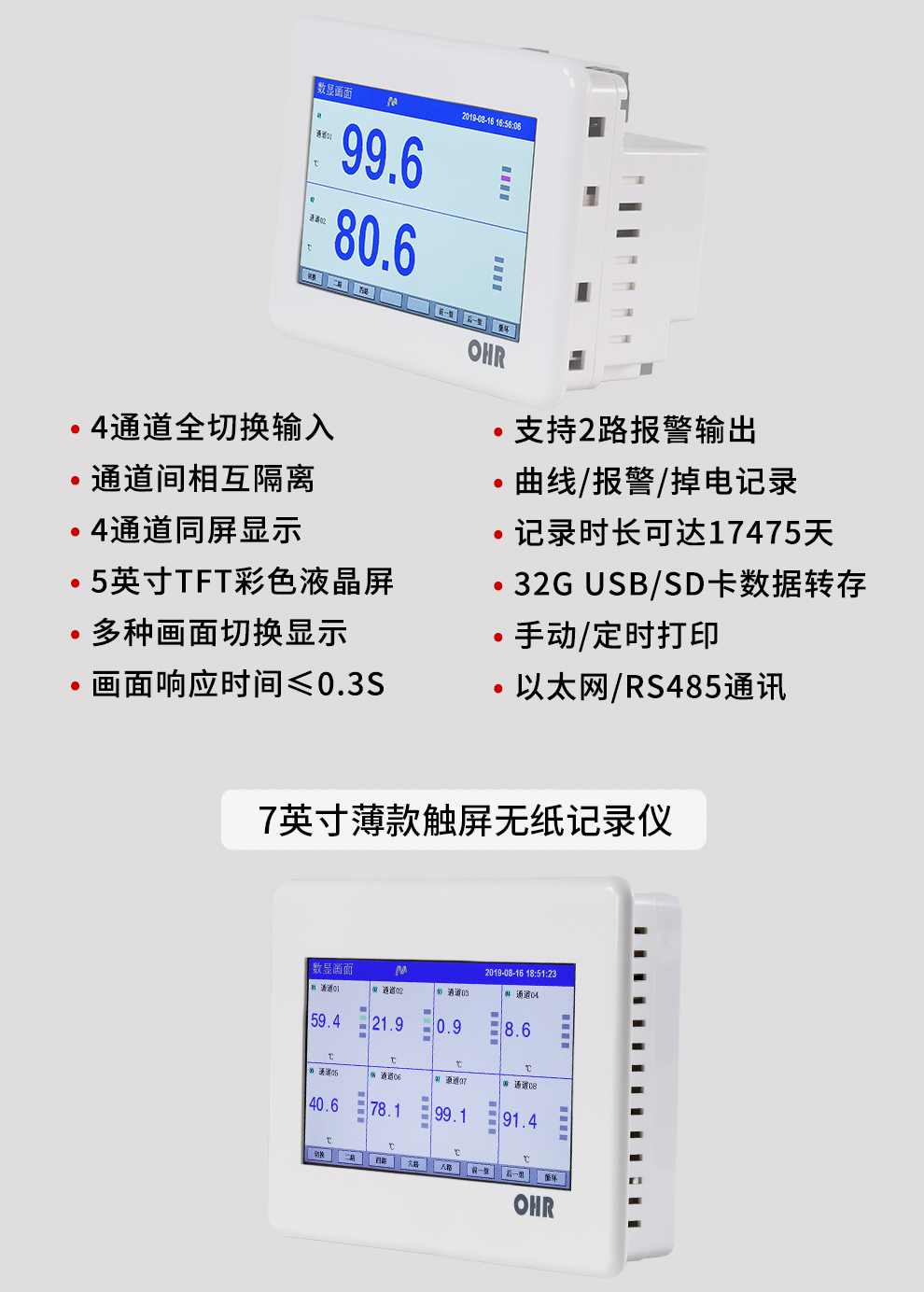 OHR-T系列觸摸超薄彩色無紙記錄儀