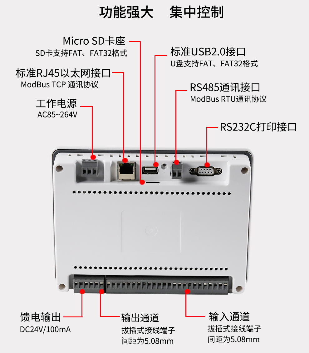 • 彩色無紙記錄儀/溫度記錄儀采用新型大規模集成電路,對輸入、輸出、電源、信號采取可靠保護和強抗干擾設計。8路萬能信號輸入(可組態選擇輸入:標準電壓、標準電流、熱電偶、熱電阻、頻率、毫伏等)。可帶4路報警輸出,1個饋電輸出,RS485通訊接口,以太網接口,微型打印機接口和USB接口,SD卡插座。