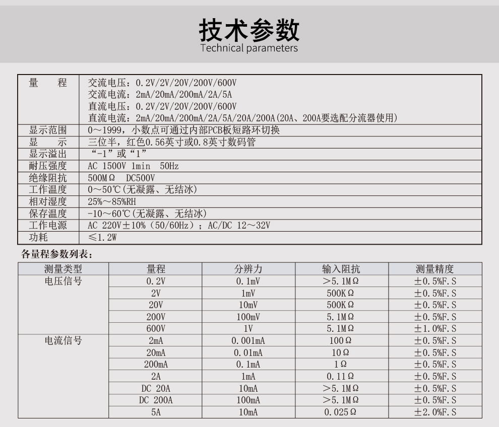 • 電流表電壓表大屏顯示、精準測量,多種電壓/電流量程可選、強抗干擾