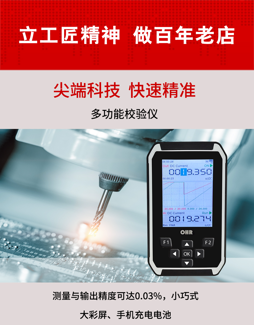 OHR-C00多功能校驗儀/信號發生器是帶測量與輸出的過程信號校驗儀。產品具有高精度、信號任意切換、續航能力強、大彩屏占比、小巧可裝口袋等特點,產品功能設置簡單易用,為使用者帶來了更便捷的體驗。