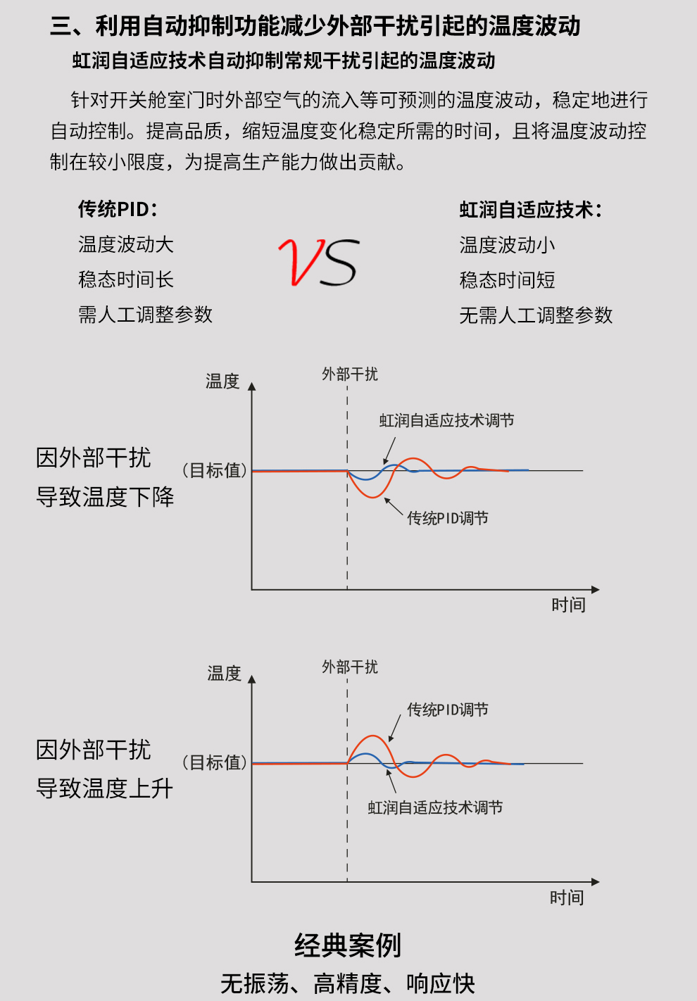 • 傻瓜式人工智能PID溫控器采用模糊PID算式,儀表啟動自整定功能,可以根據被控對象的特性,自動尋找參數以達到很好的控制效果,無需人工整定參數,控溫精度基本達±0.1℃,無超調、欠調,性價比高。