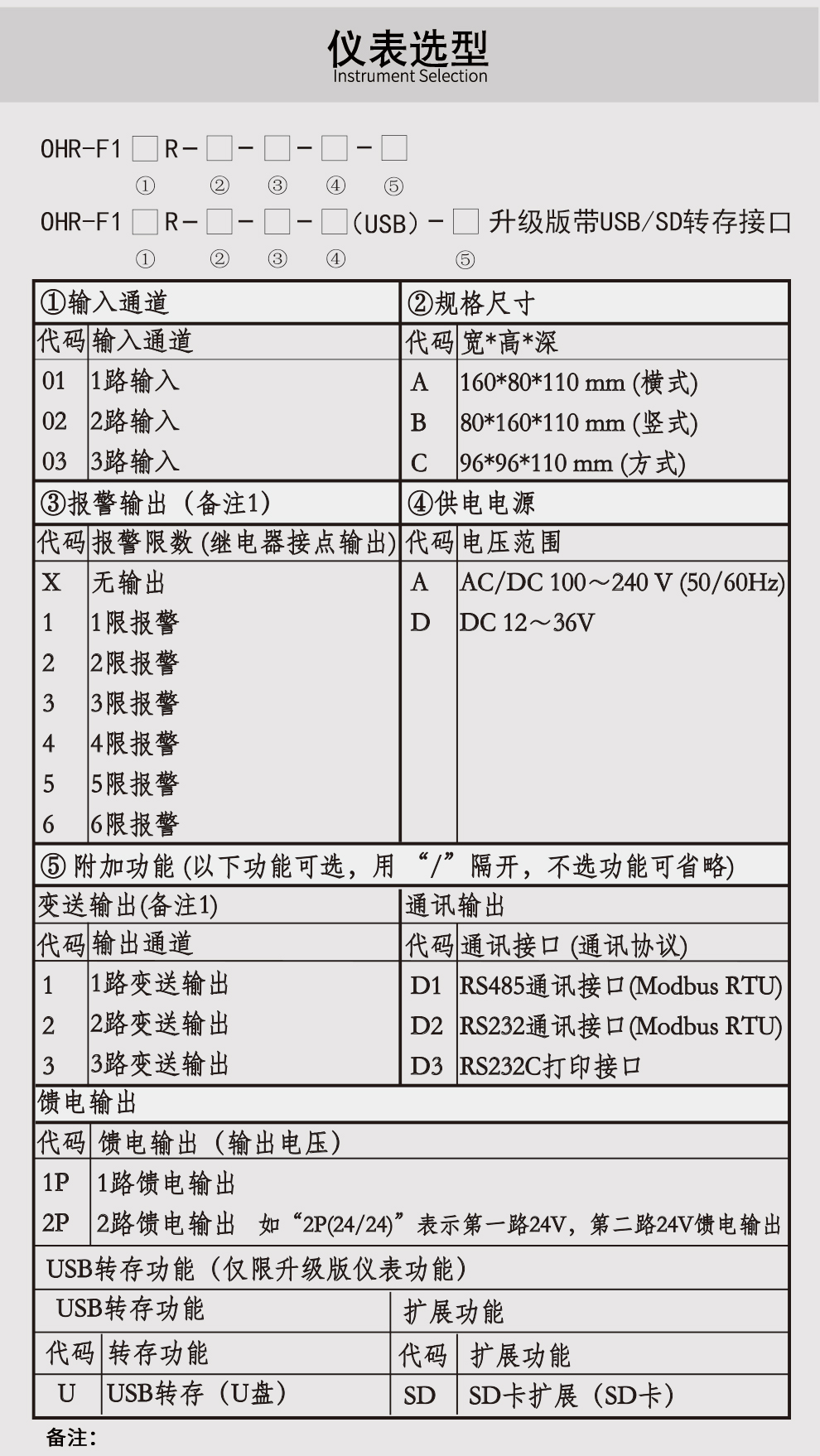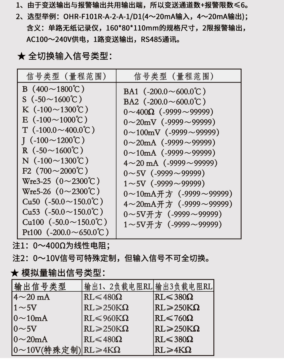 3、OHR-F100R系列無紙記錄儀(配套型)選型(鼠標(biāo)右鍵另存下載)