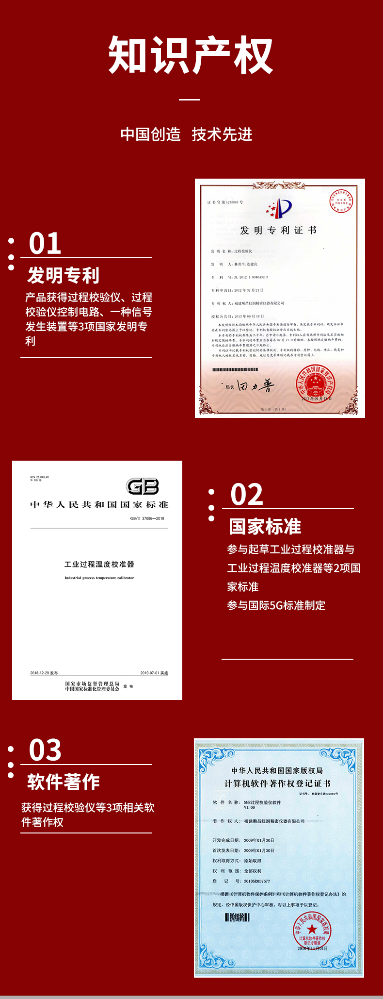 虹潤公司是專業生產過程校驗儀的國家專精特新“小巨人”企業。生產的過程校驗儀,具有測量輸出同步,多類型測量與輸出信號,熱電偶/熱電阻與溫度互查,精度達0.01%FS,內置鋰電池供電等特點。產品獲得過程校驗儀、過程校驗儀控制電路、一種信號發生裝置等3項國家發明專利,起草工業過程校準器與工業過程溫度校準器等2項國家標準,參與國際5G標準制定,取得過程校驗儀等3項相關軟件著作權。產品廣泛應用于工業自動化生產線、實驗室、化工、冶金、制藥等行業過程控制中,現場設備的調試與校驗。