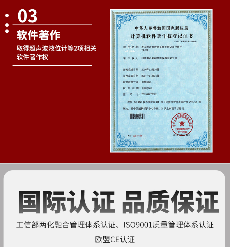 虹潤公司是專業生產超聲波液位計的國家專精特新“小巨人”企業。生產的一體式超聲波液位計,具有數據記錄與轉存,智能回波曲線顯示,RS485通訊,報警繼電器輸出,報警日志等特點。產品獲得無紙記錄儀以及一種信號發生裝置等2項國家發明專利,主持起草物聯網智能記錄儀表以及工業過程控制系統用模擬輸入兩位或多位輸出儀表等2項國家標準,參與國際5G標準制定,取得超聲波液位計等2項相關軟件著作權。產品廣泛石化、電力、食品、污水處理、市政設施等諸多領域