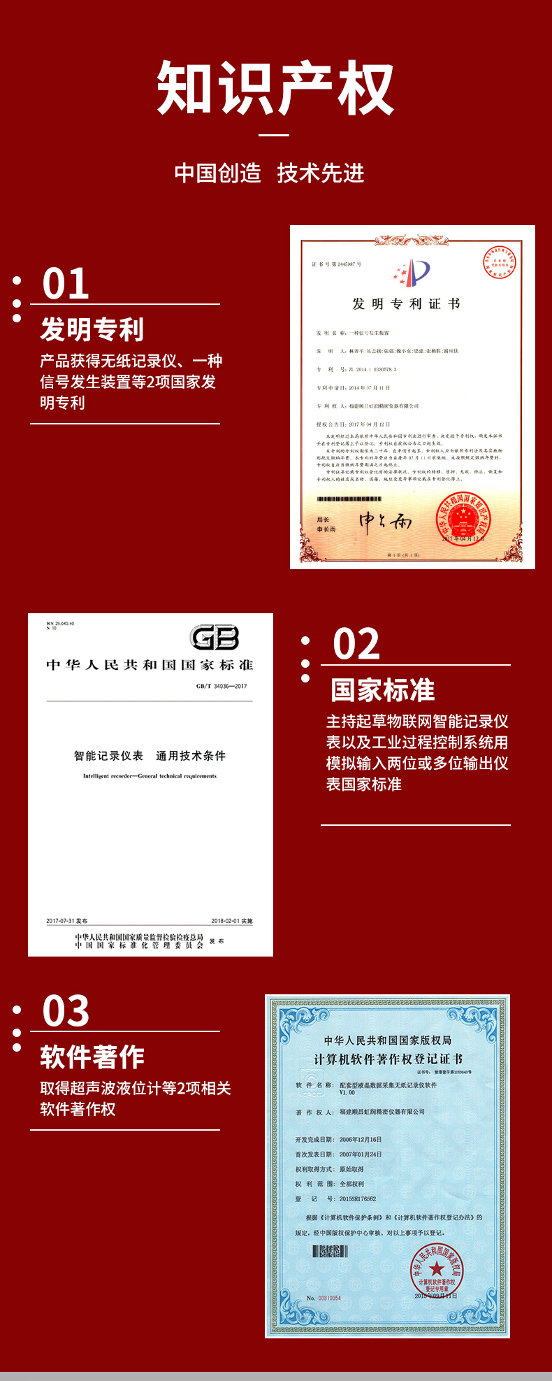 虹潤(rùn)公司是專業(yè)生產(chǎn)超聲波液位計(jì)的國(guó)家專精特新“小巨人”企業(yè)。生產(chǎn)的分體式超聲波液位計(jì),具有數(shù)據(jù)記錄與轉(zhuǎn)存,智能回波曲線顯示,RS485/以太網(wǎng)通訊,報(bào)警繼電器輸出,報(bào)警日志等特點(diǎn)。產(chǎn)品獲得無紙記錄儀以及一種信號(hào)發(fā)生裝置等2項(xiàng)國(guó)家發(fā)明專利,主持起草物聯(lián)網(wǎng)智能記錄儀表以及工業(yè)過程控制系統(tǒng)用模擬輸入兩位或多位輸出儀表等2項(xiàng)國(guó)家標(biāo)準(zhǔn),參與國(guó)際5G標(biāo)準(zhǔn)制定,取得超聲波液位計(jì)等2項(xiàng)相關(guān)軟件著作權(quán)。產(chǎn)品廣泛石化、電力、食品、污水處理、市政設(shè)施等諸多領(lǐng)域