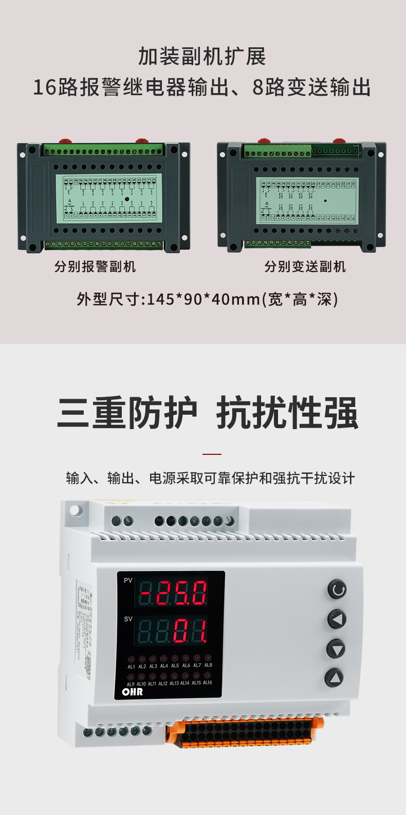 虹潤公司是專業生產多路溫度巡檢儀的國家專精特新“小巨人”企業。生產的導軌多路巡檢儀,具有八回路巡檢采集,全切換信號輸入,高抗電磁干擾,全隔離設計,分別報警/分別變送輸出等特點。產品獲得巡回檢測顯示方法及裝置以及工業模塊的導軌式安裝結構等2項國家發明專利,主持起草工業過程控制系統用模擬輸入兩位或多位輸出儀表、物聯網智能溫度儀表通用技術條件等2項國家標準,以及通信系統多通道數據采集控制終端規范軍用標準,參與國際5G標準制定,取得巡回檢測控制儀等3項相關軟件著作權。產品廣泛應用于石化、冶金、電力、食品、制藥、水處理、實驗室等諸多領域。